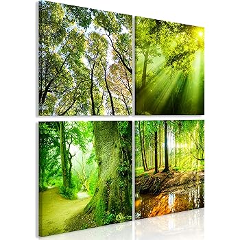 decomonkey Bilder Natur Wald 40x40 cm 4 Teilig Leinwandbilder Bild auf Leinwand Vlies Wandbild Kunstdruck Wanddeko Wand Wohnzimmer Wanddekoration Deko Baum Landschaft: Amazon.de: Küche & Haushalt